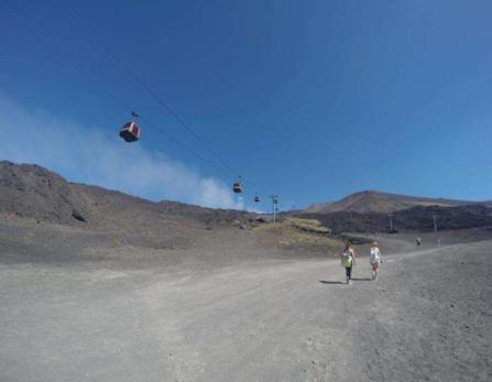 Il existe de nombreuses options pour visiter l'Etna en randonnée (sur le versant Sud vers la zone proche du Sommet) : vous pourrez prendre le funiculaire pour monter vers le Terminal Funivia à 2 500 mètres d’altitude, puis poursuivre l’aventure à pieds jusqu’à la limite autorisé sans guide, soit 2 700 mètres d'altitude.